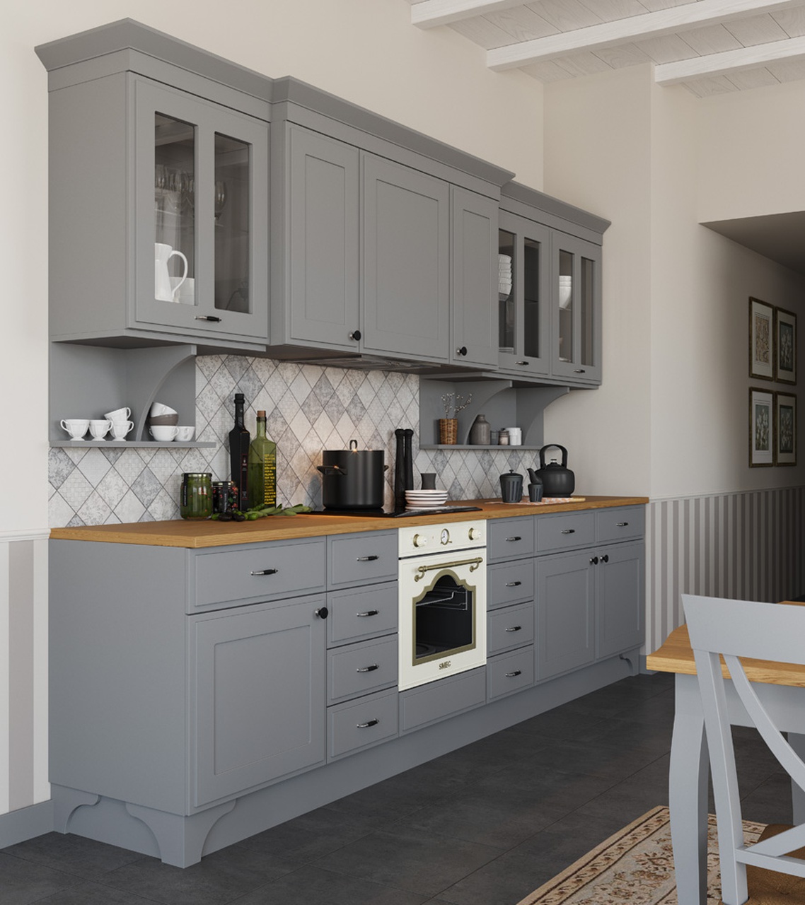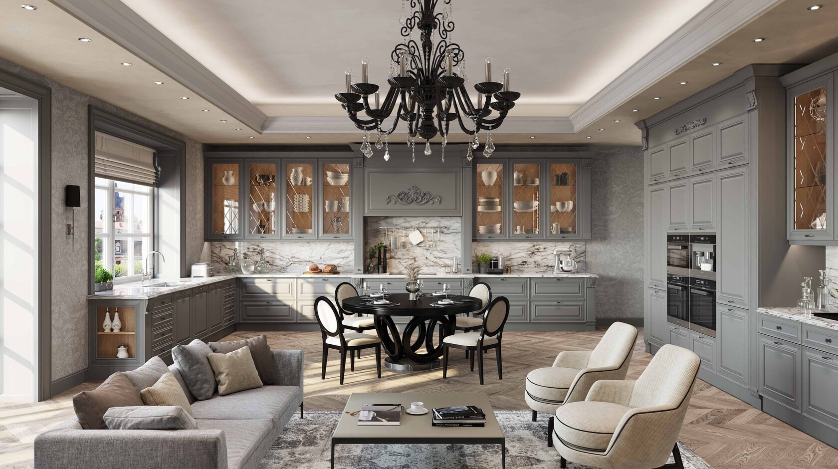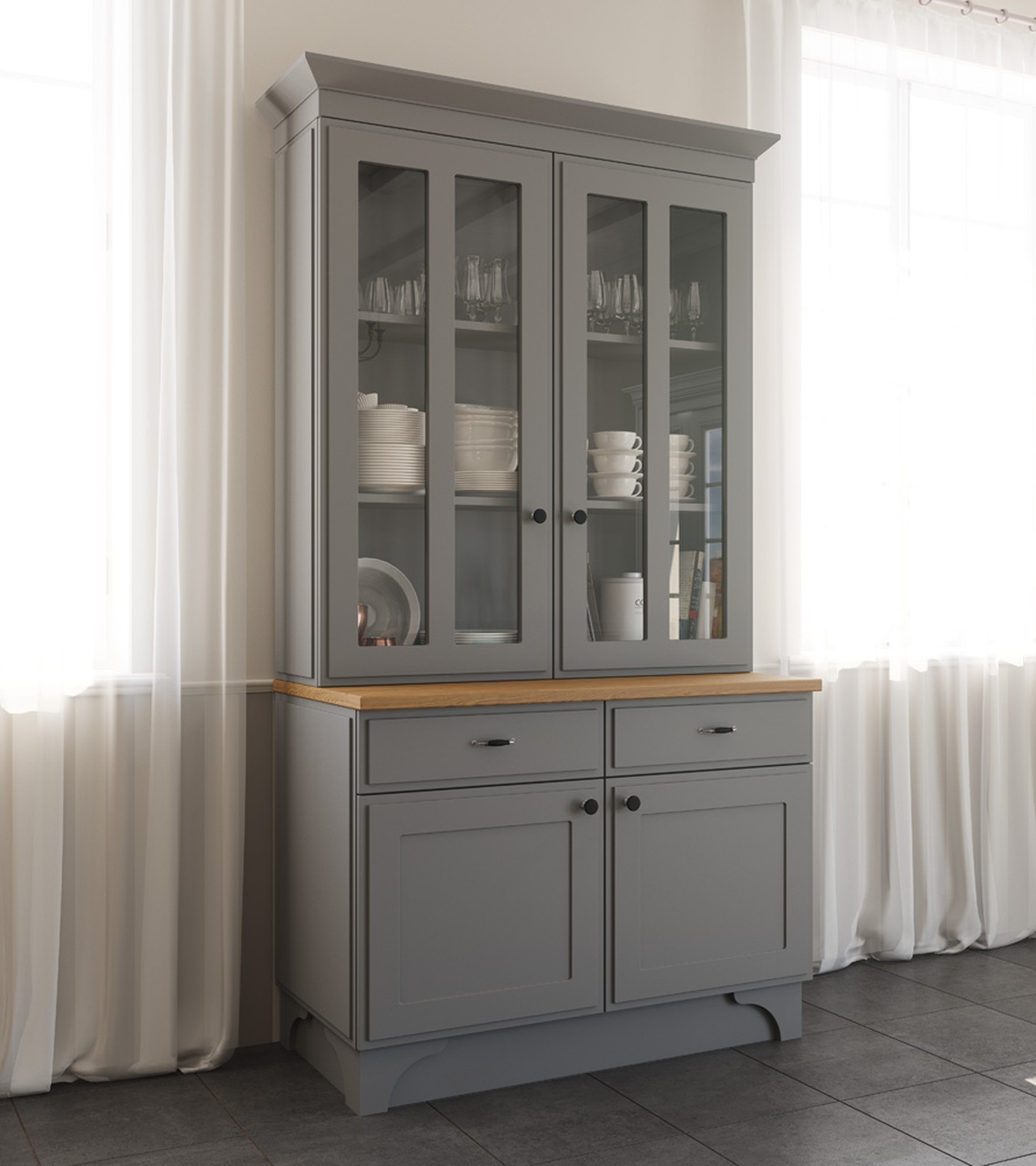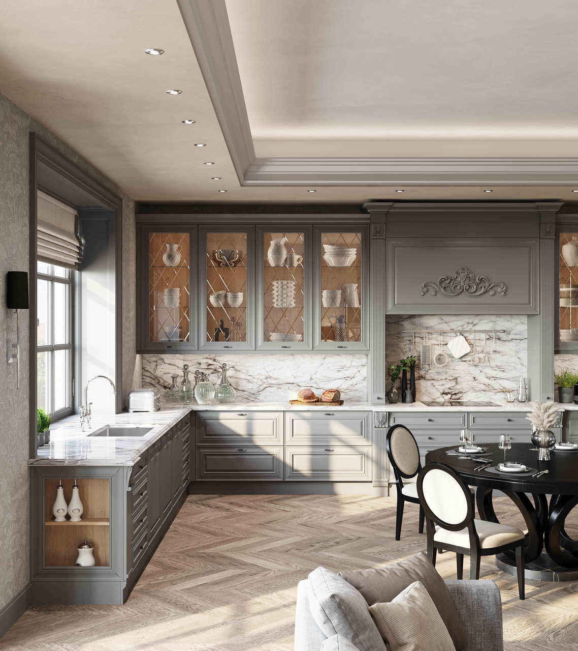 Элегантная модель Серая Классика сочетает в себе простые, гармоничные формы и теплоту материалов.