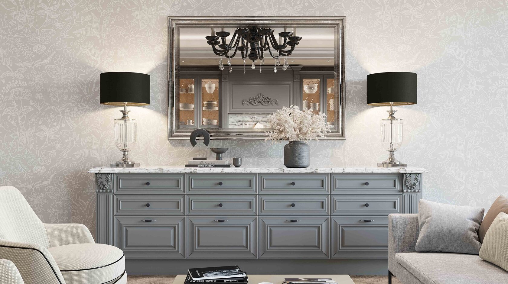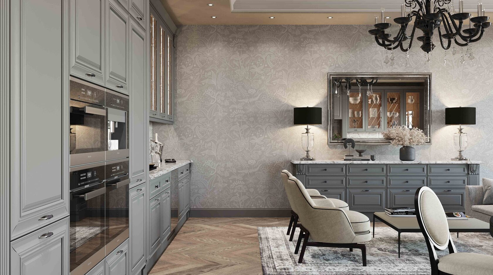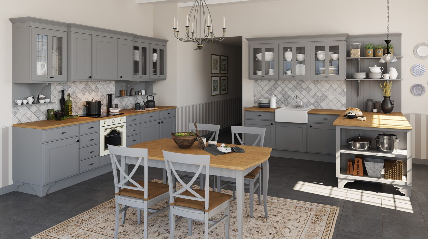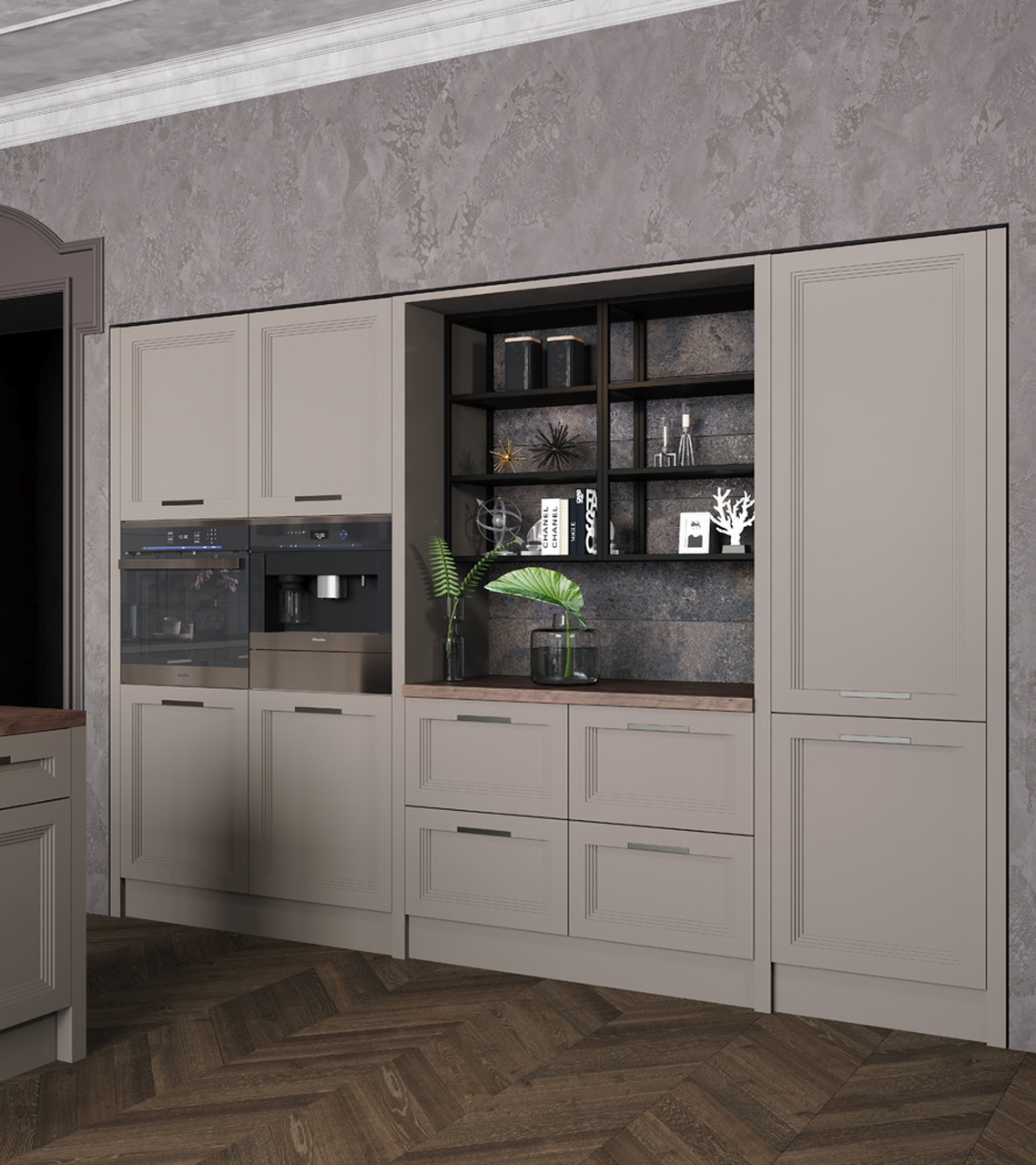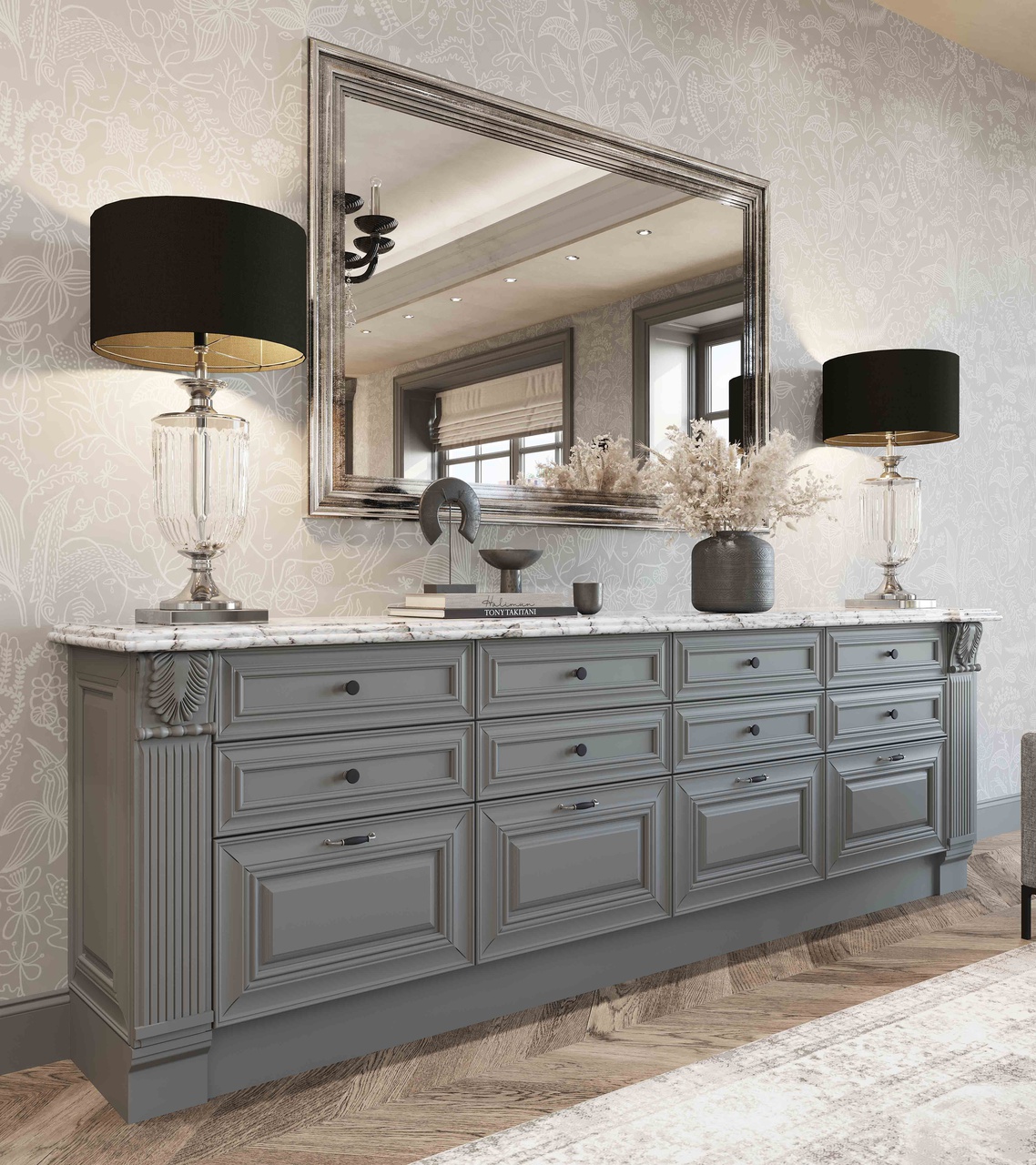 Элегантная модель Серая Классика сочетает в себе простые, гармоничные формы и теплоту материалов.
