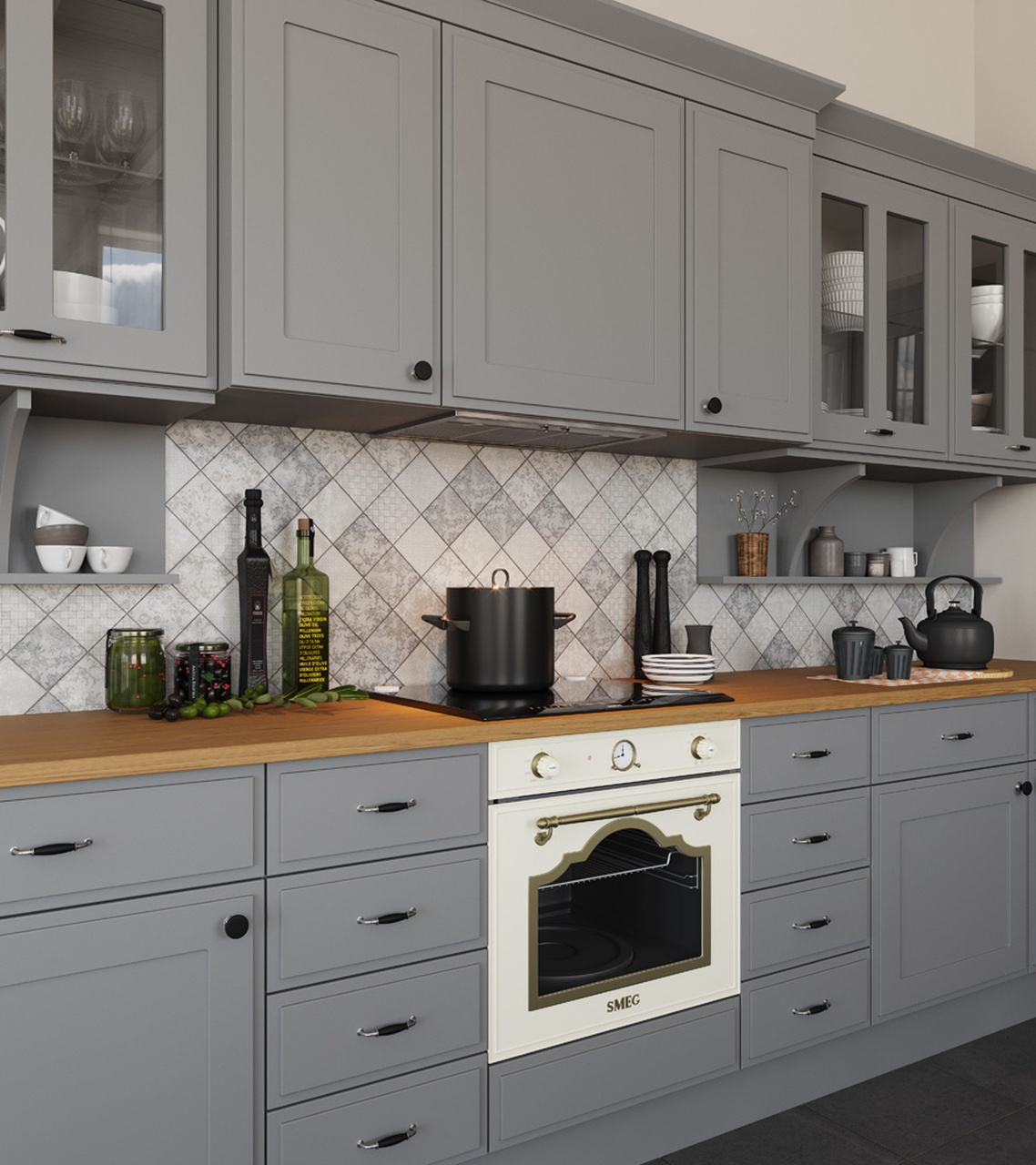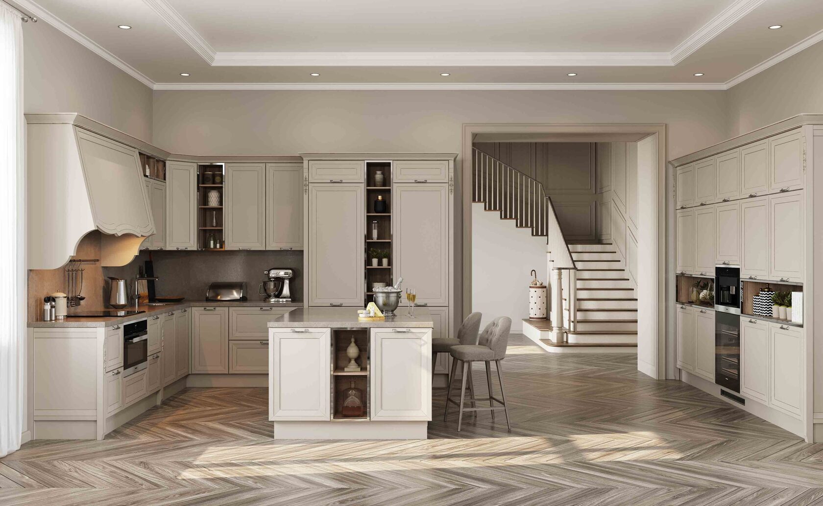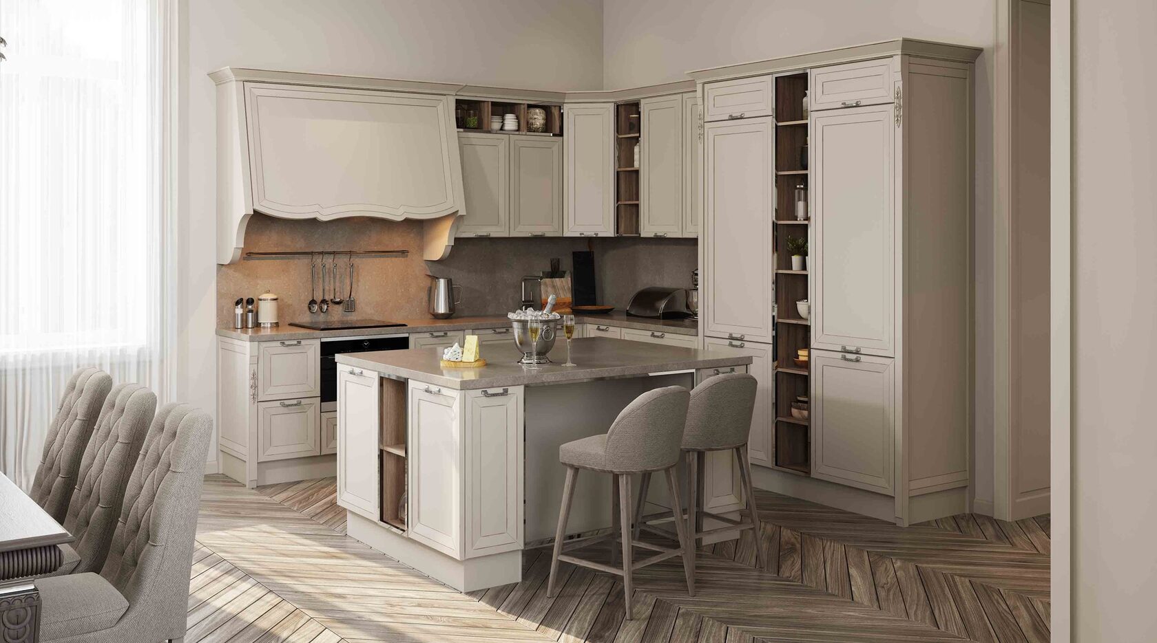 Фабиана – идеальное решение для тех, кто предпочитает классический стиль, но при этом не хочет отставать от современности. Она эффектно сочетает в себе элементы строгой, сдержанной классической традиции, которые гармонично взаимодействуют с современными материалами и простыми формами. Первое, что бросается в глаза при взгляде на эту кухню — четкие и лаконичные формы, базирующиеся на предельно простой геометрии, но при этом уникальный 4-х уровневый фасад в сочетании со скрытой интегрированной ручкой придают модели утонченность, внутреннюю сдержанность, которая и отличает настоящую роскошь от показной.