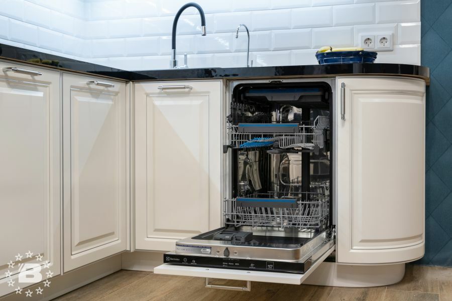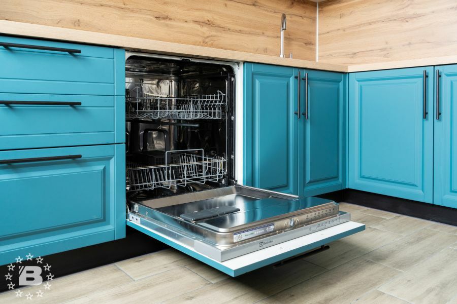 Угловой кухонный гарнитур Бирюза. Фасады МДФ в бирюзовом цвете смотрятся очень свежо и легко. Фрезеровка фасадов Мадрид добавляет нотки изысканности и лаконичности. Пенал под духовой шкаф отлично справляется со своими функциями.