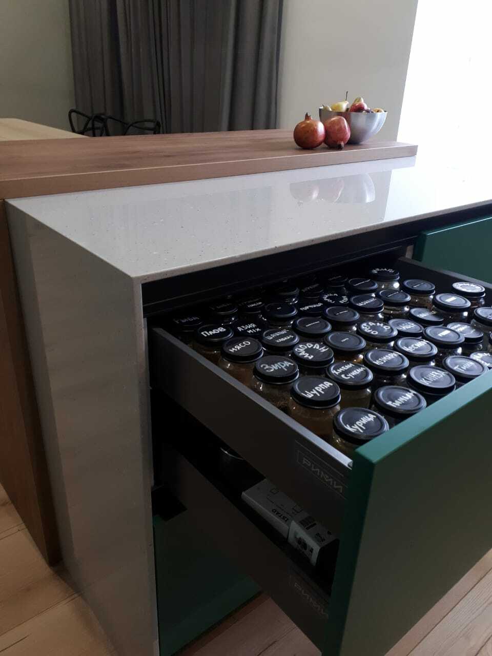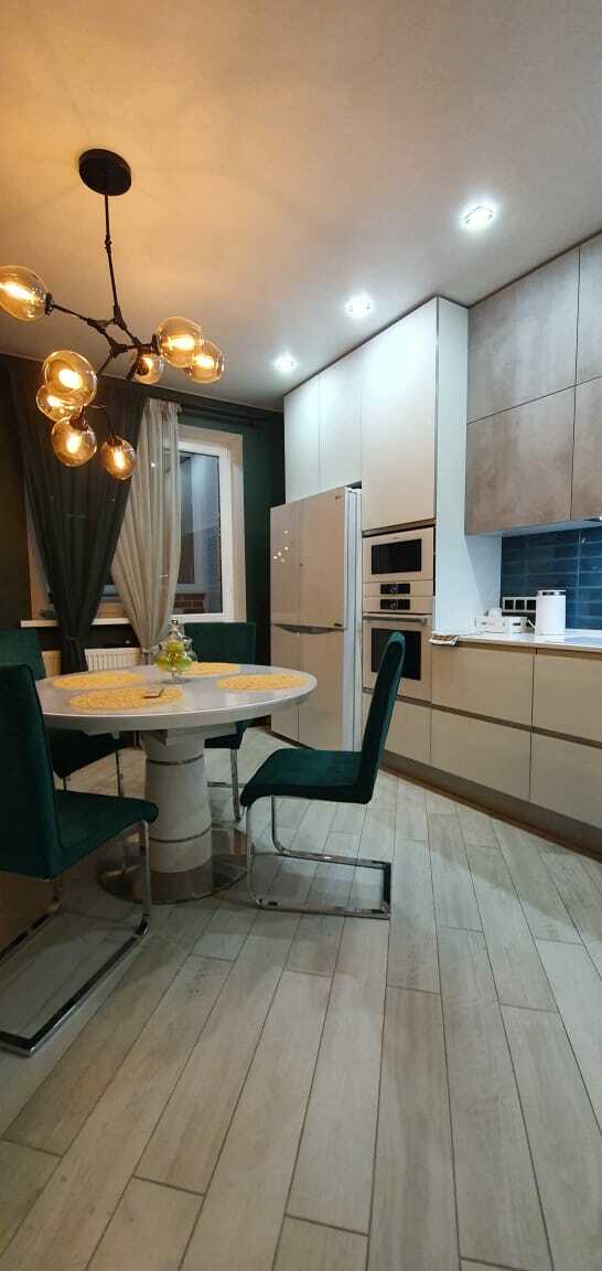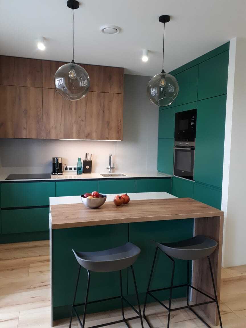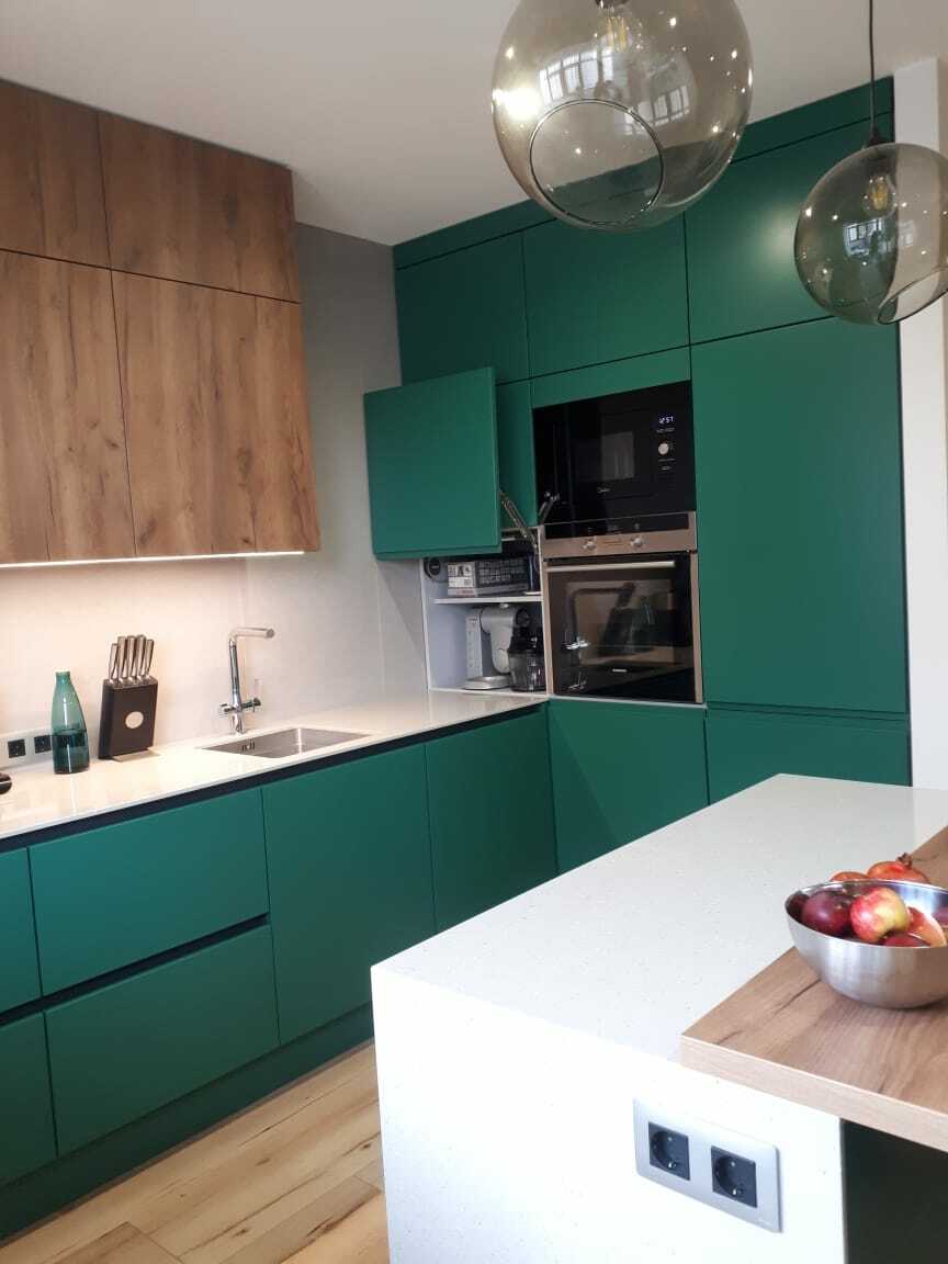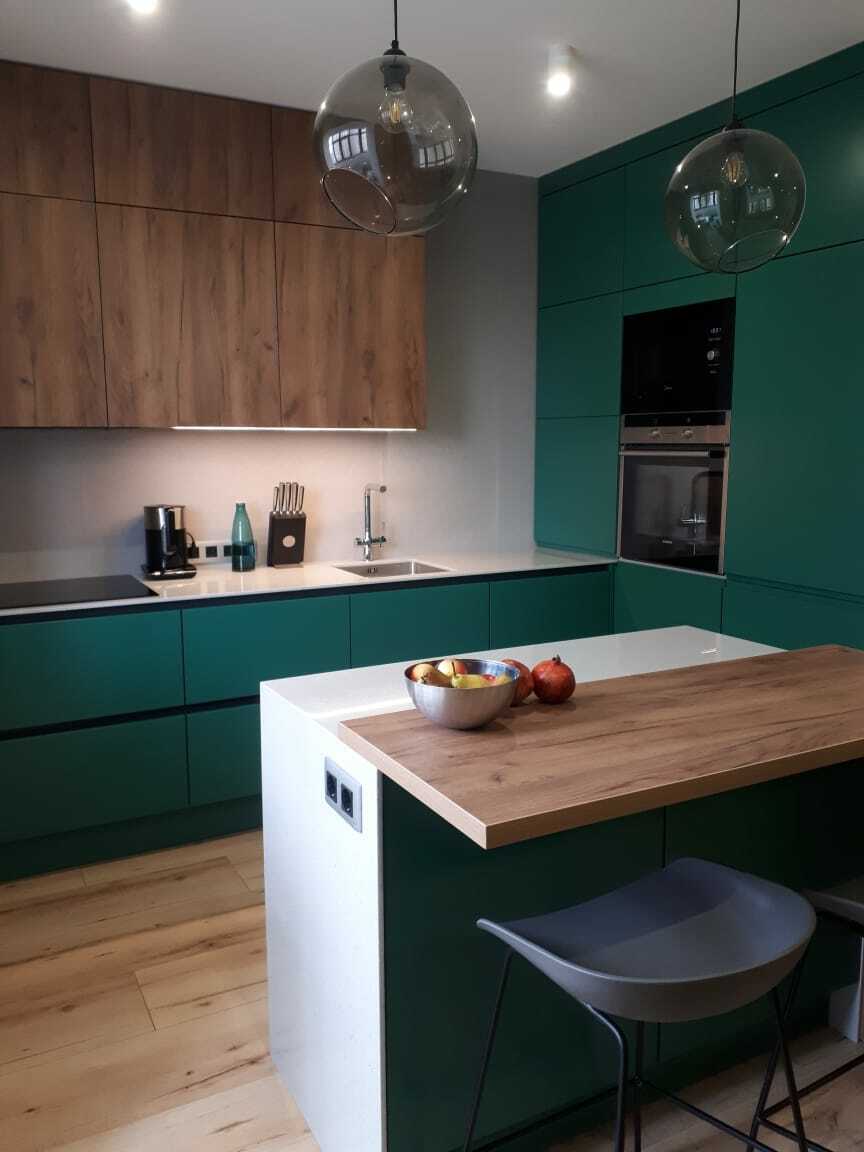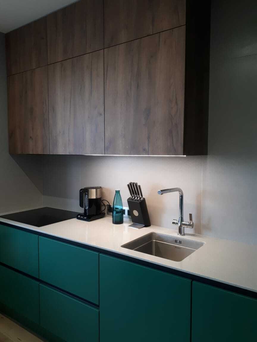 Ручка и фасад являются единым целым, что обеспечивает функциональность интерьера, позволяет оптимально использовать пространство и избавляет от затрат на подбор и установку мебельных ручек. Новейшие технологии, использованные при производстве этой кухни, делают ее долговечной и универсальной.
