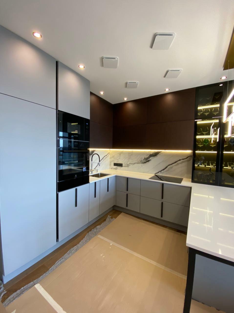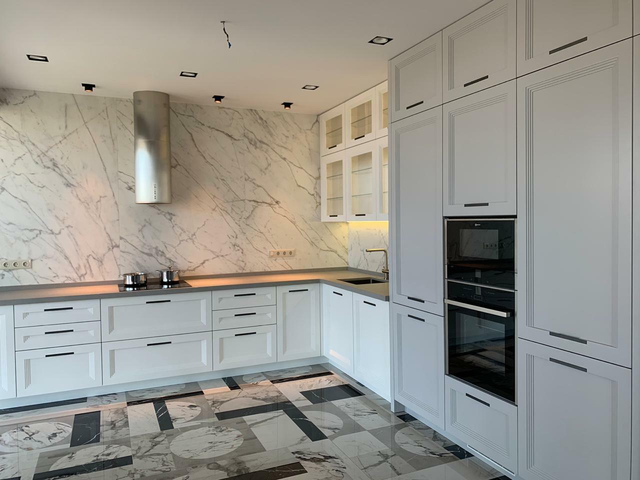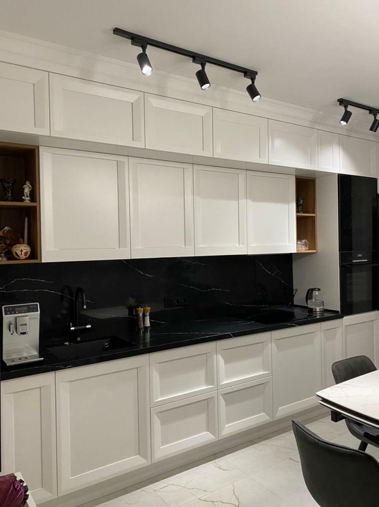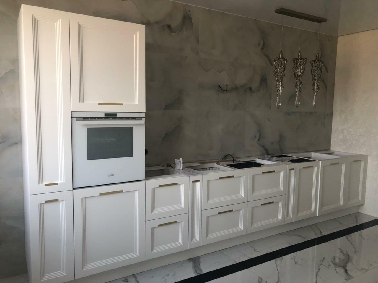 Не жертвуя роскошным дизайном, в ней все продумано до мелочей: фасады из МДФ с вогнутой поверхностью, имитирующий рамку, и декоративным фрезерованным молдингом, эргономичные поверхности и места для хранения, которые помогают оптимизировать пространство и сделать его максимально удобным для повседневного использования.