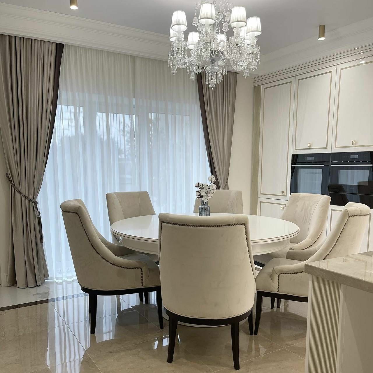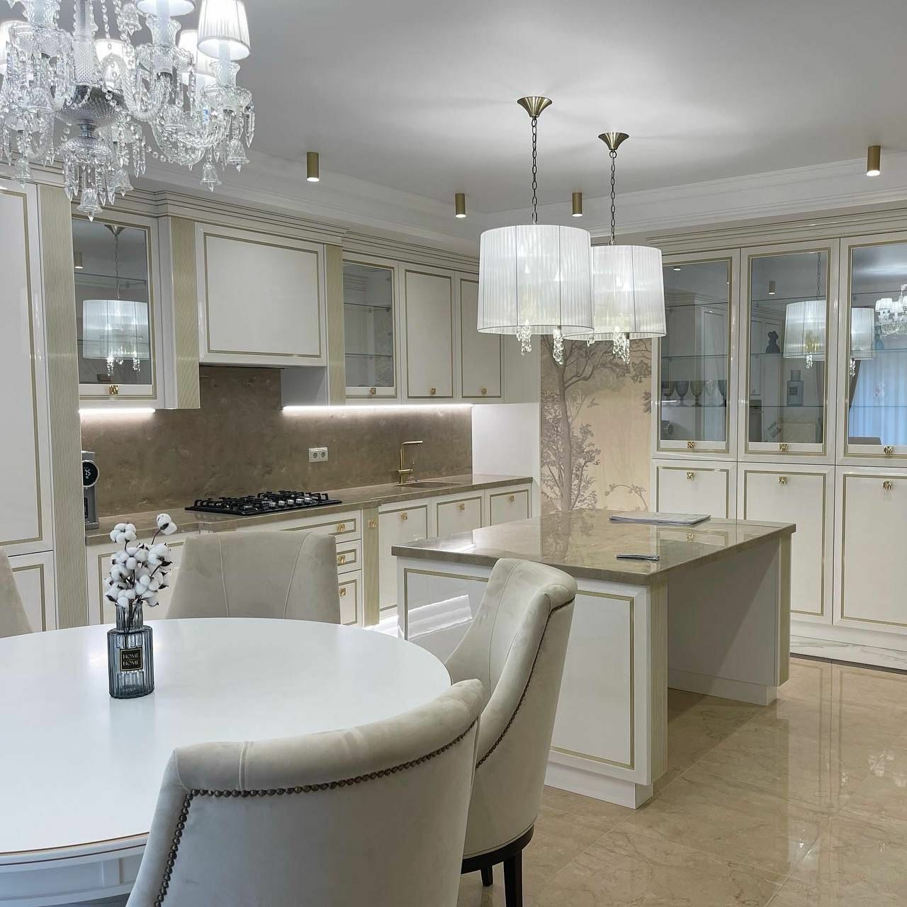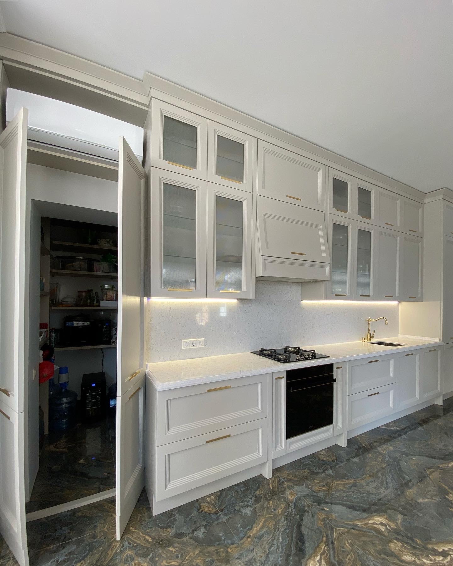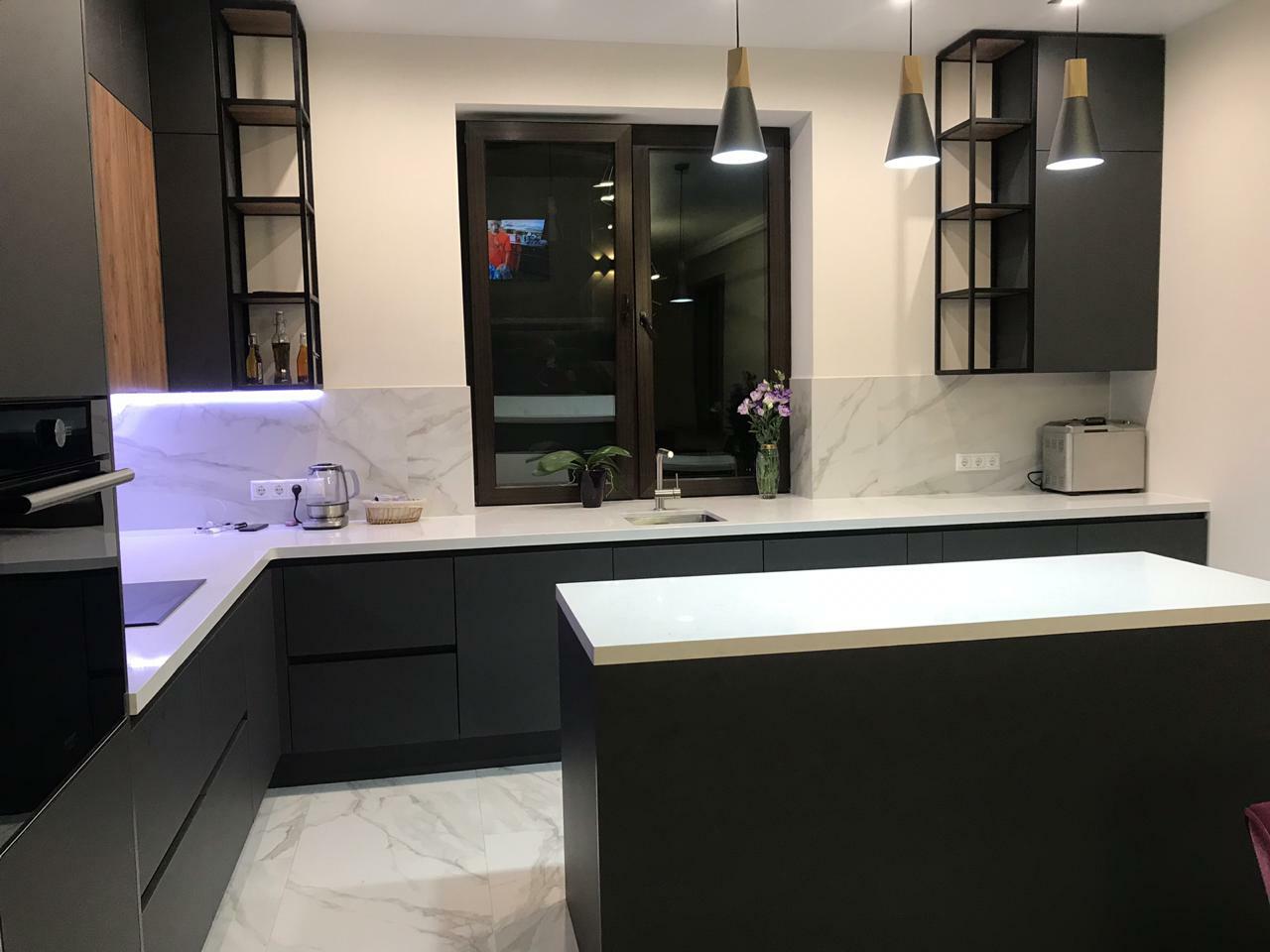 Не жертвуя роскошным дизайном, в ней все продумано до мелочей: фасады из МДФ с вогнутой поверхностью, имитирующий рамку, и декоративным фрезерованным молдингом, эргономичные поверхности и места для хранения, которые помогают оптимизировать пространство и сделать его максимально удобным для повседневного использования.
